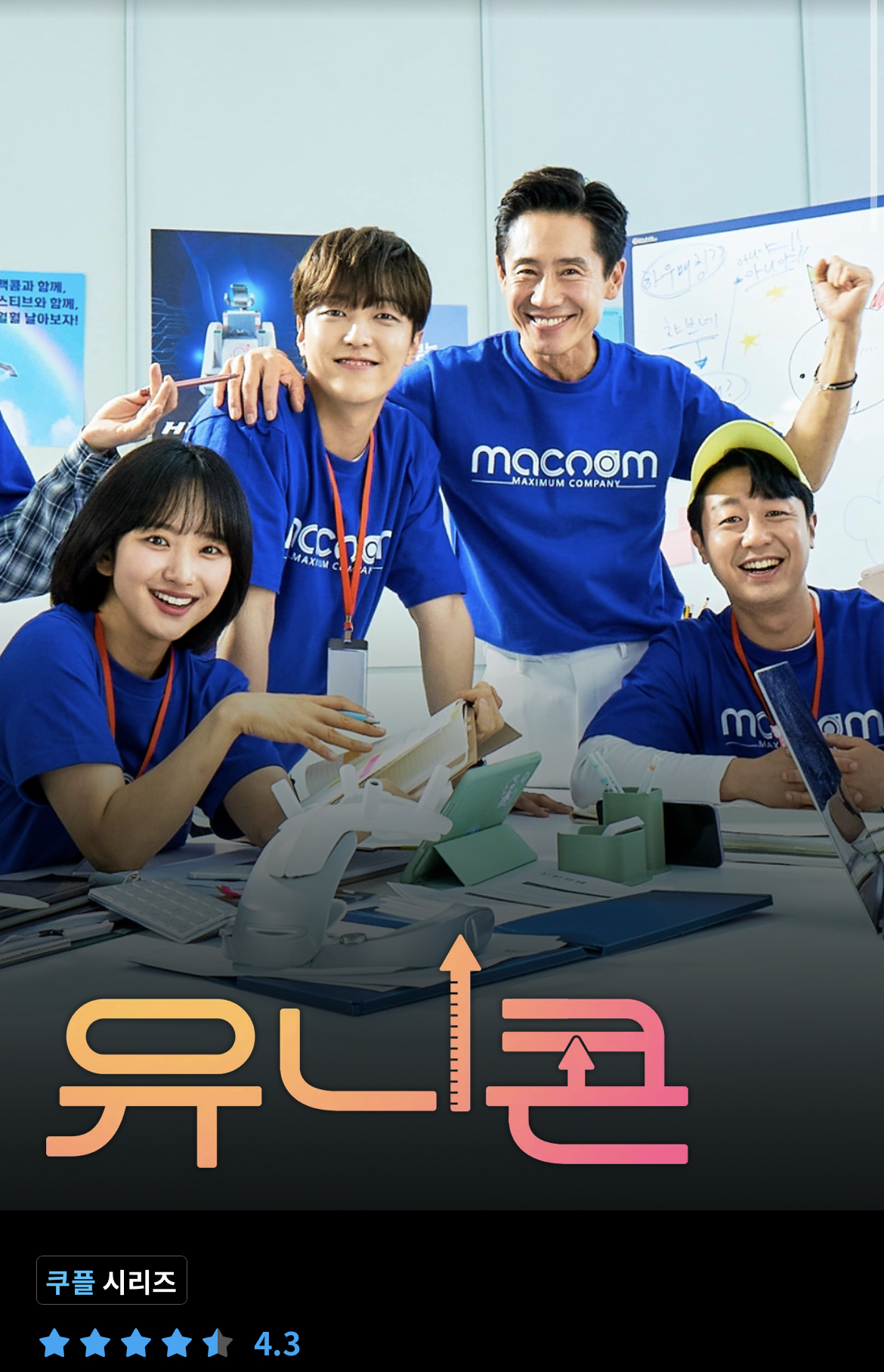 하이킥 시리즈 이 후 그렇다할 인기 시트콤이 나오고 있지 않은 상황에서 쿠팡의 첫 시트콤<유니콘> 시트콤 장르의 팬들이 기대감 채워주기에는 개인적으로 아쉬운 작품이었다.